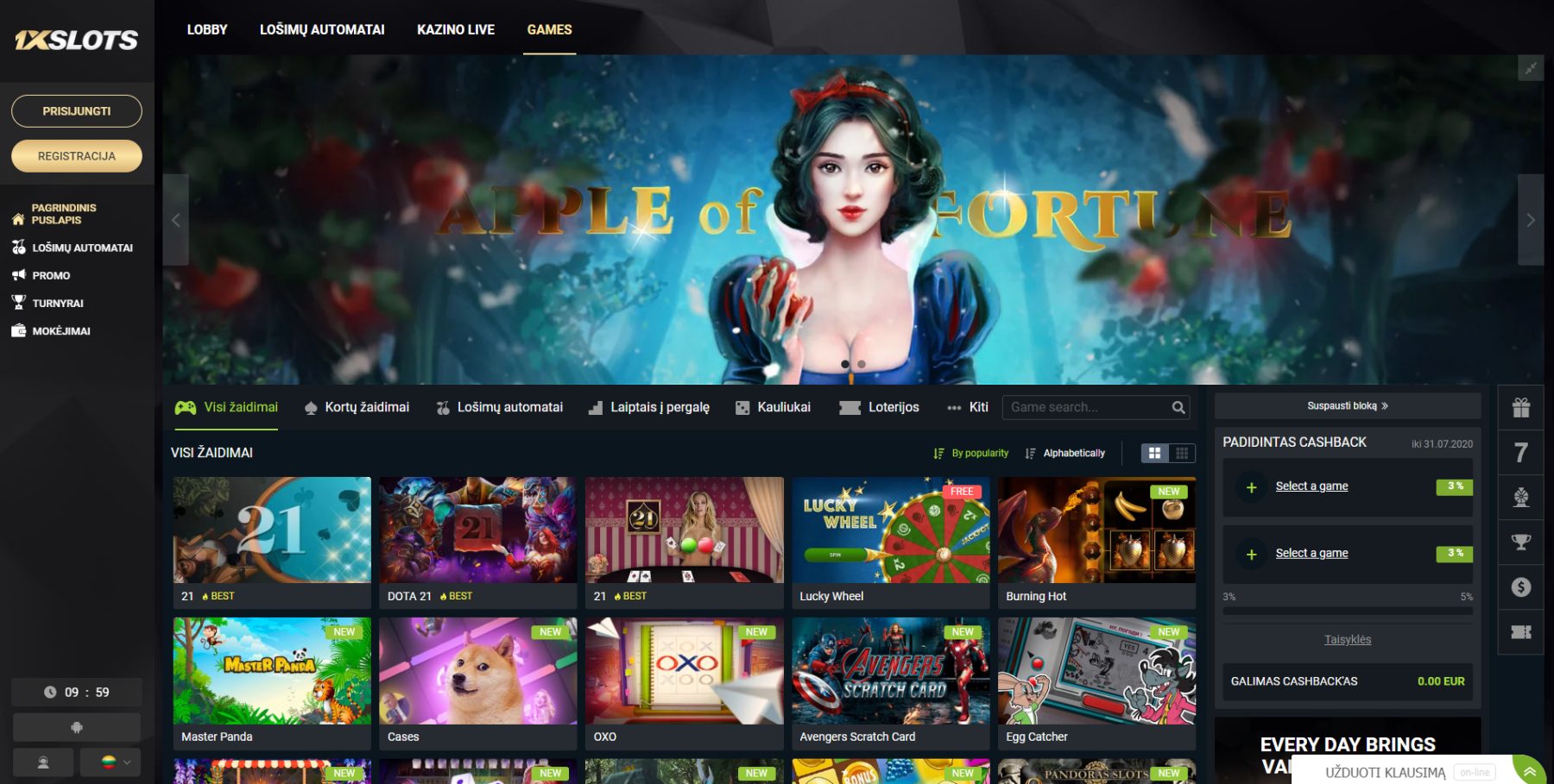1xSlots kazino apžvalga – žaidimų pasiūla