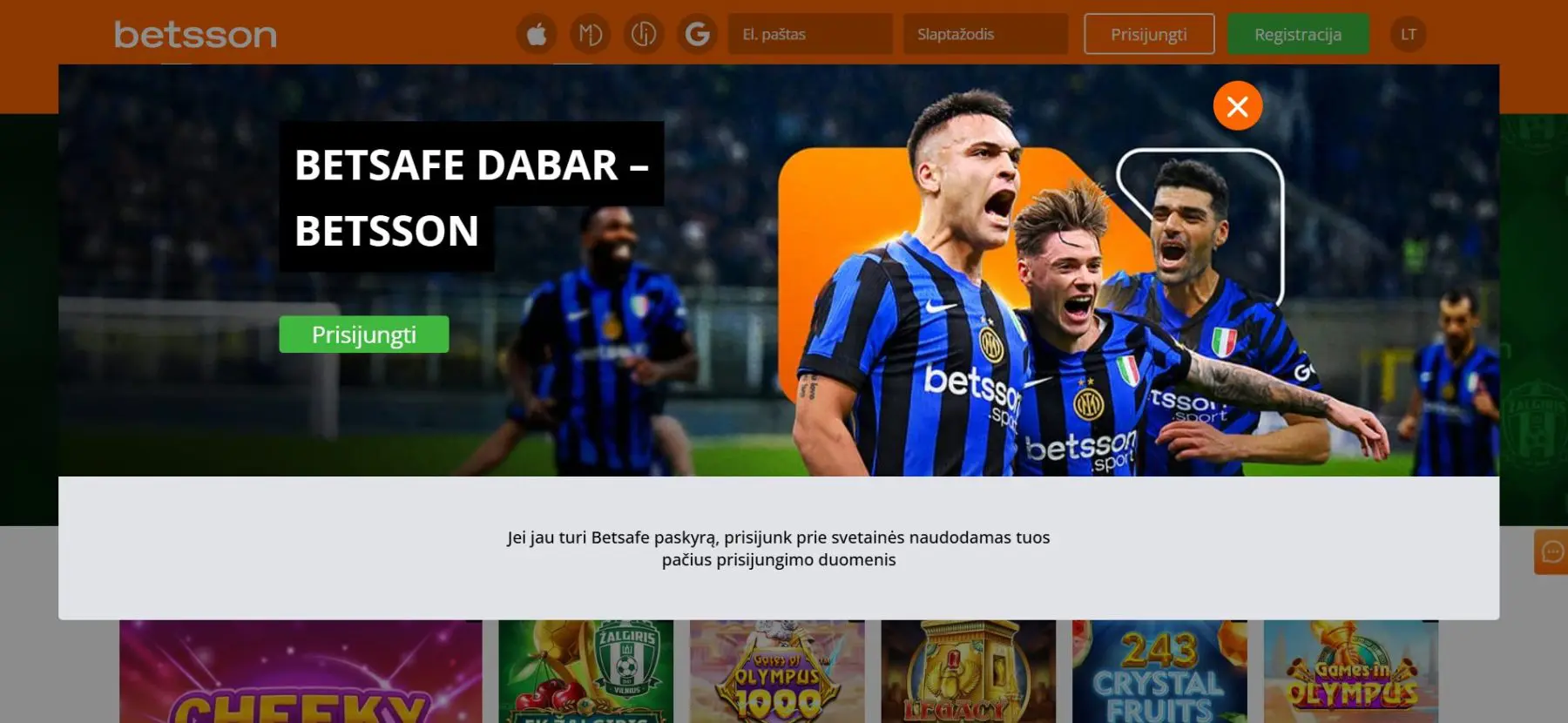 Turintys paskyrą „Betsafe“ kazino klientai gali iš karto jungtis prie „Betsson“ platformos naudodami savo įprastus prisijungimo duomenis. Visa vartotojų paskyrose sukaupta informacija – įskaitant sąskaitos likučius ir žaidimų istoriją – automatiškai ir saugiai perkeliama į naująją betsson.lt svetainę.