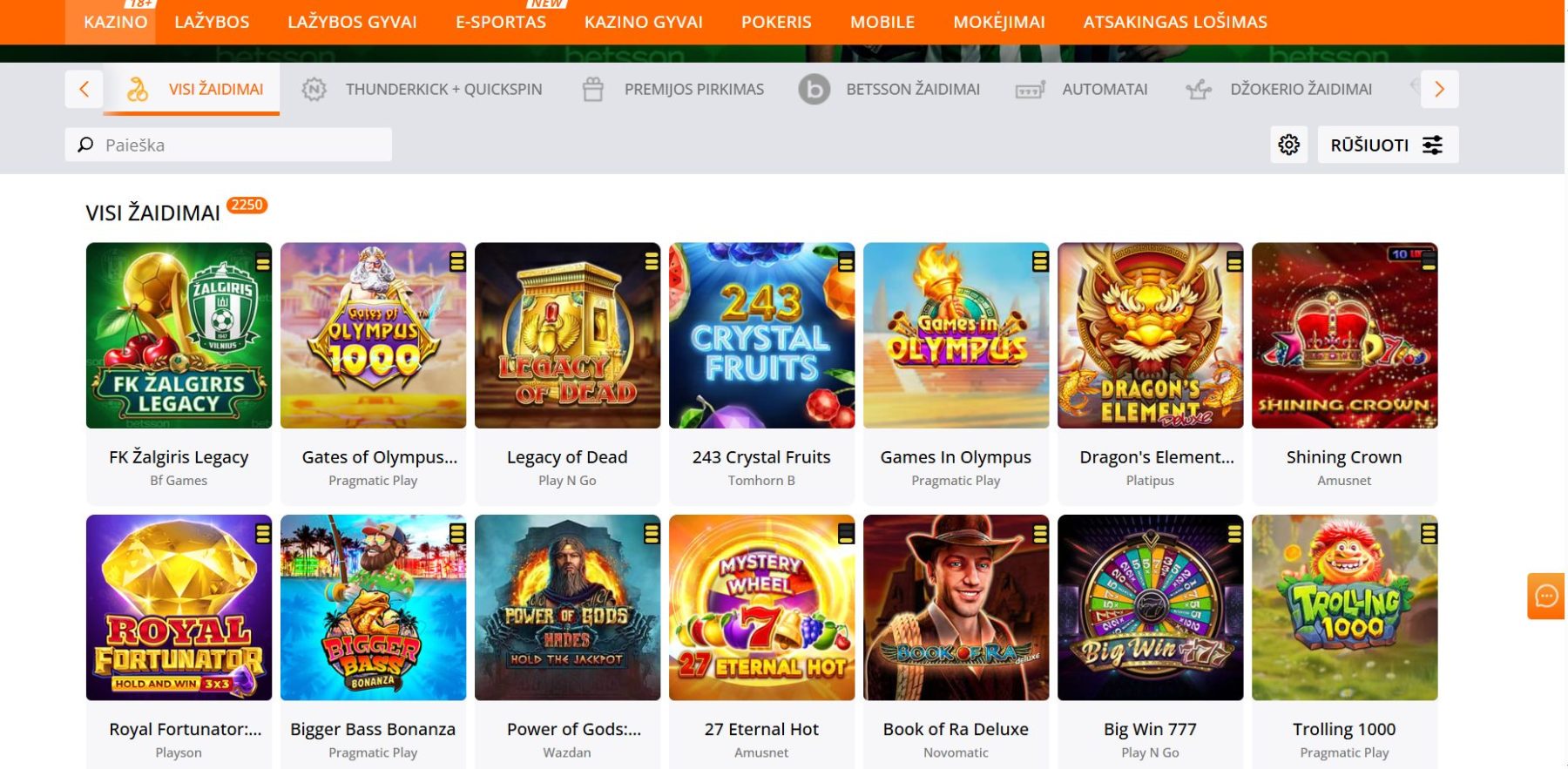 Naujojoje „Betsson“ platformoje – daugiau nei 2 000 kazino žaidimų pavadinimų.