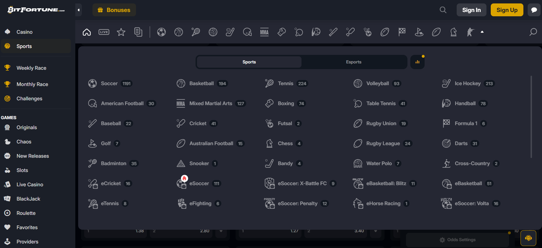 Ar „BitFortune“ kazino siūlo sporto lažybas?