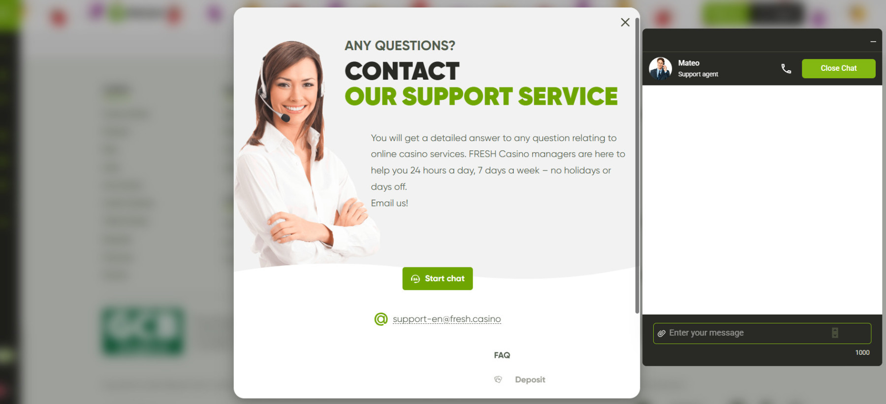 Susisiekti su „Fresh“ kazino galite šiais būdais: