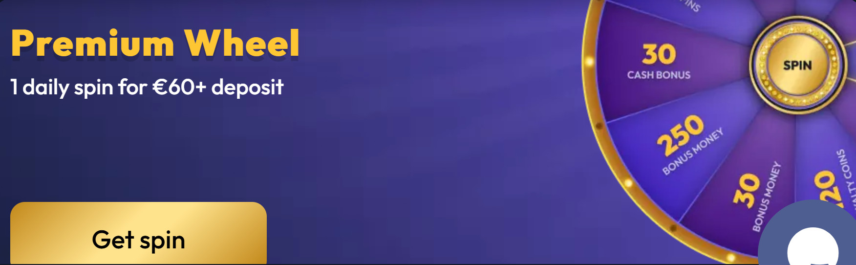 Ieškantiems daugiau adrenalino – „Premium Wheel“ yra bilietas į didesnius laimėjimus. Vos 60 € įnašas ir jau dalyvaujate akcijoje, kur sukimas suteikia ne tik dosnius bonusus, bet ir įspūdingus daugiklius bei dovanas.
