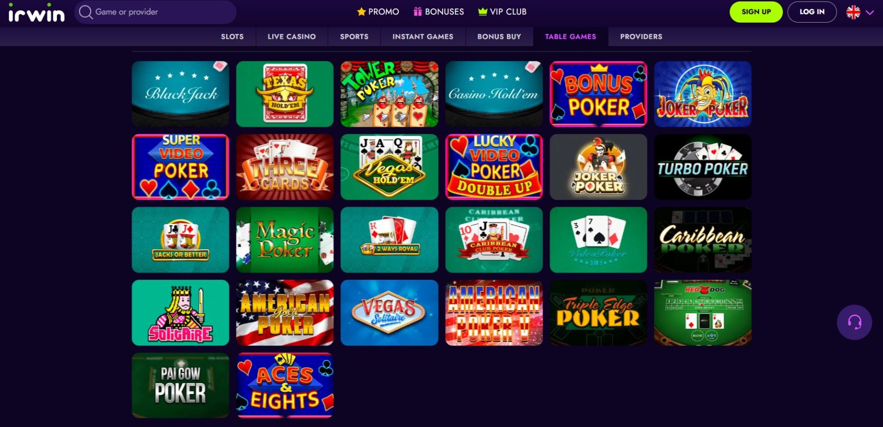 Ieškote internetinių kazino kortų žaidimų, kuriuose galimybės laimėti būtų sąžiningos? „Irwin Casino“ siūlo išskirtinę kolekciją – nuo trumpų ir atsipalaidavimui skirtų raundų iki žaidimų, reikalaujančių apgalvotų ėjimų.