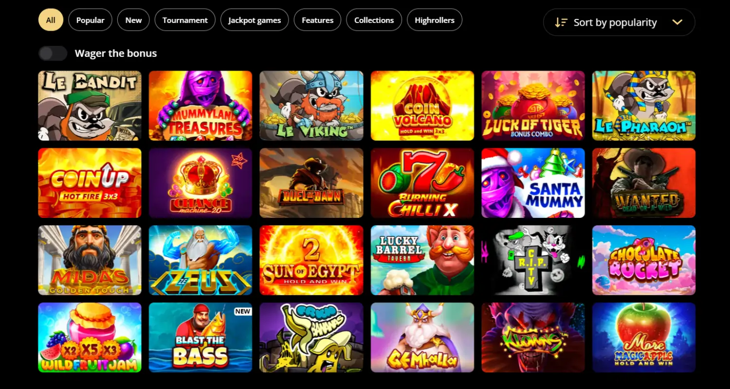 „Lex.Casino“ rasite įvairias lošimų automatų kategorijas – populiarius žaidimus, naujienas, “jackpot’us”, turnyrus ir žaidimus su specialiomis funkcijomis. Patogi svetainės struktūra ir paieška leidžia greitai rasti mėgstamus žaidimus, o įvairios premijos ir funkcijos padaro kiekvieną sukimą įdomų.