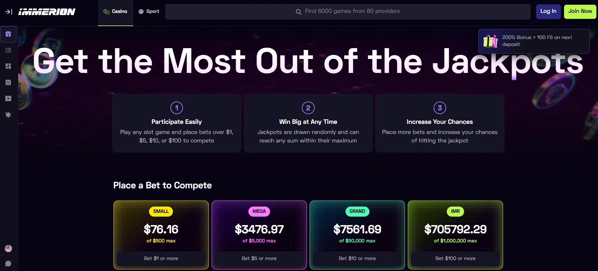 Viskas, ką jums reikia padaryti – atlikti pirmąjį 15 USD įnašą, o „Immerion“ jį padvigubins su 100 % premija iki 1000 USD ir dar pridės 100 nemokamų sukimų.