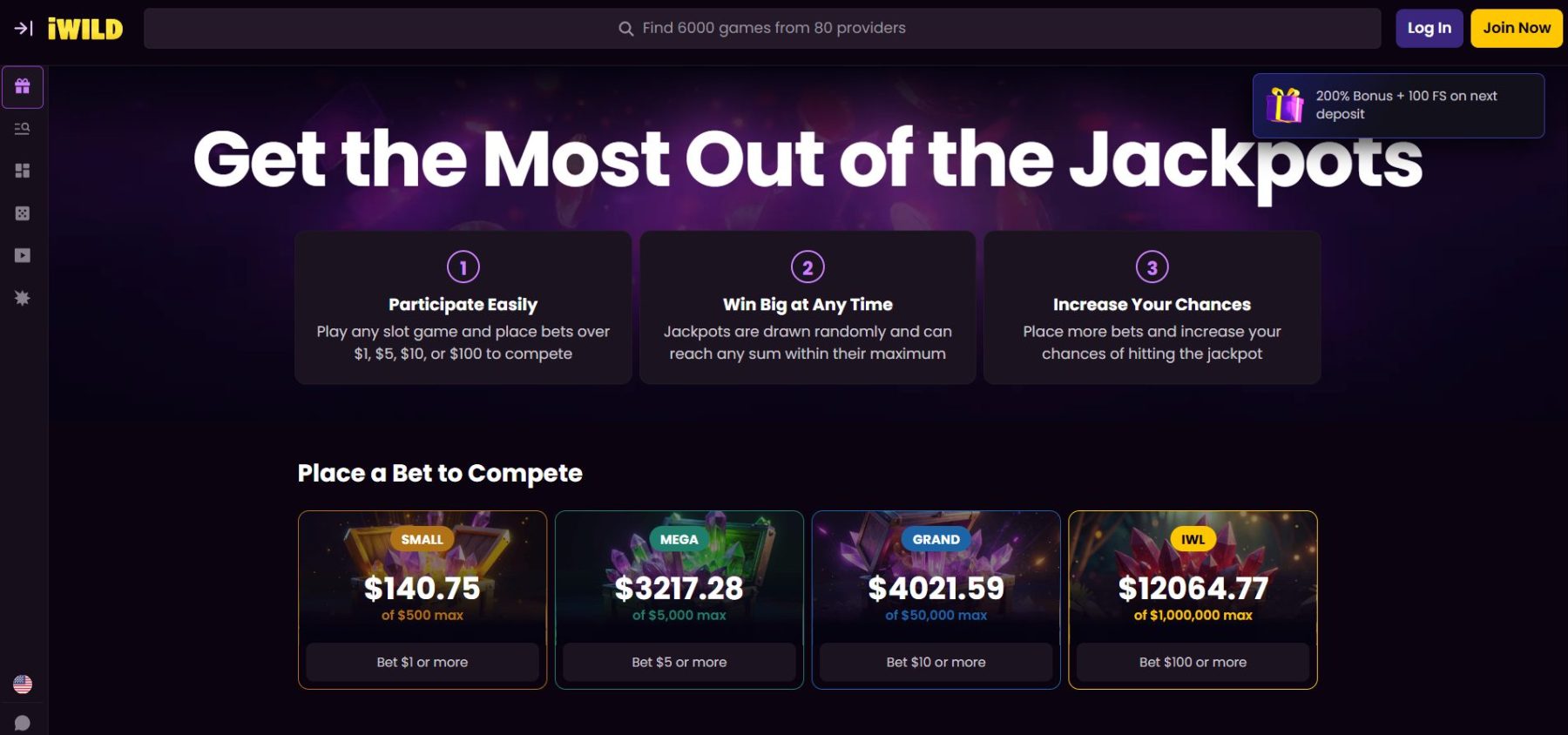 Jei mėgstate rizikuoti dėl didelių prizų, tuomet jums verta stebėti „iWild“ mėnesinius jackpotus. Statymai prasideda vos nuo 1 USD, už kurį prizai gali siekti net iki 500 USD, o statant 5 USD, 10 USD ar 100 USD, prizai laukia išties įspūdingi.