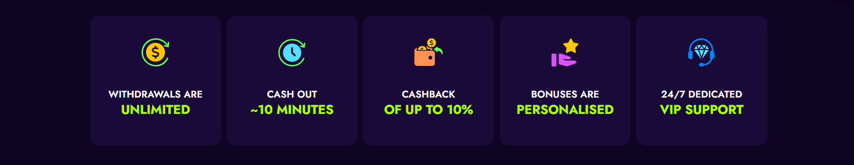 „Flash“ lygyje jūsų laukia dar daugiau išskirtinių privalumų. Kasdienio išgryninimo limitas siekia iki 10 000 €, o pinigų grąžinimo akcijai taikomas tik 5x peržaidimo reikalavimas. Nariai taip pat gauna 100 € gimtadienio dovaną, papildymo premijas, itin greitus išmokėjimus ir asmeninį vadybininką.