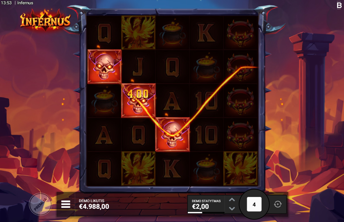 Svarbiausią vaidmenį „Infernus“ lošimo automate atlieka specialūs simboliai, kurie suteikia papildomus raundus ir didina laimėjimo daugiklį. Jei ekrane pasirodo keli tokie simboliai iš eilės, laimėjimo suma gali šoktelėti akimirksniu.
