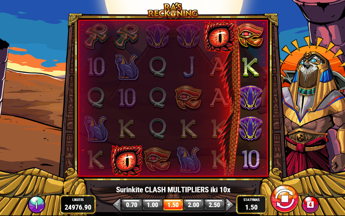 „Ra’s Reckoning“ žaidime laimėjimai skaičiuojami pagal simbolių grupes. Laimėję simboliai išnyksta, o jų vietą užpildo nauji, todėl vieno sukimo metu galite laimėti kelis kartus iš eilės.