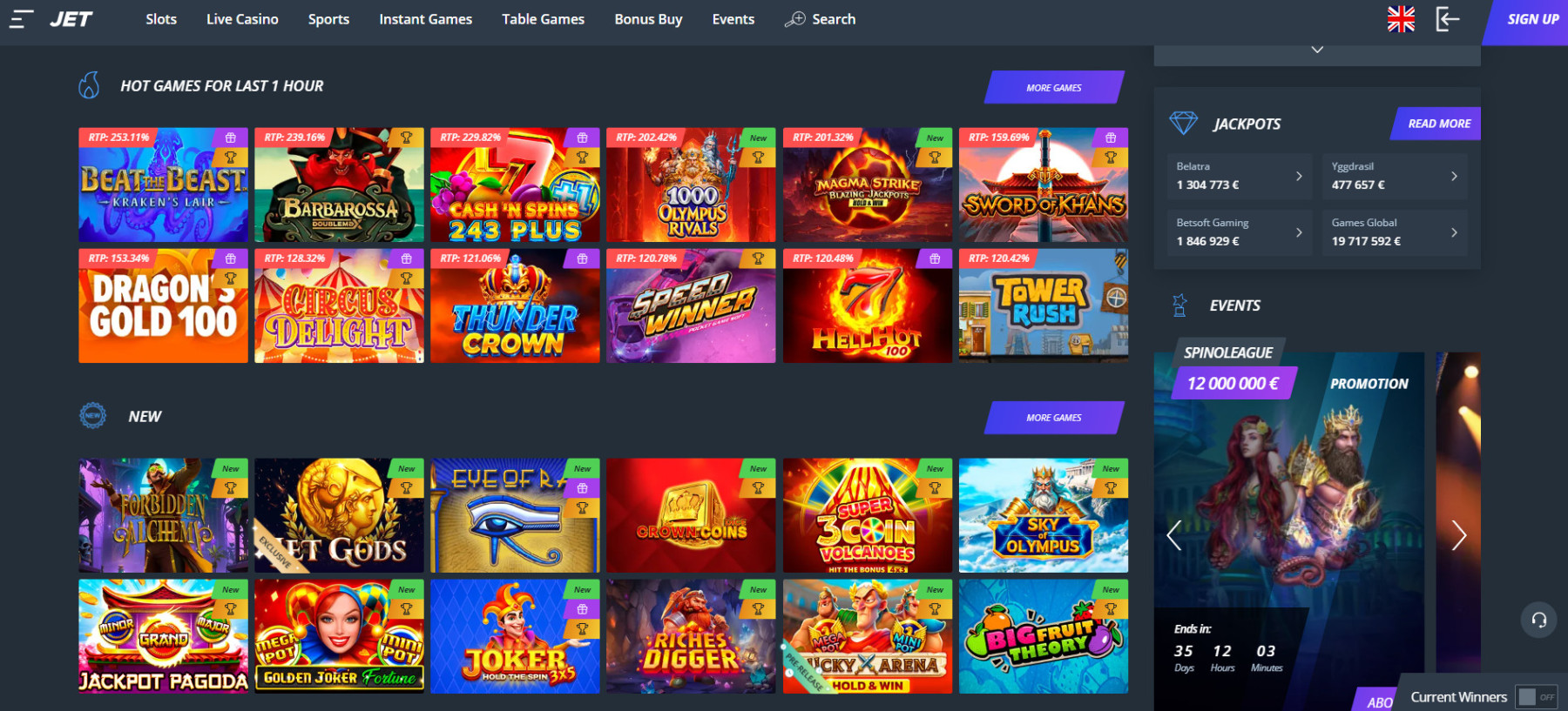 Momentinių žaidimų pasirinkimas „Jet“ kazino tikrai išsiskiria – jis gerokai platesnis nei tai, ką paprastai siūlo kitos kazino svetainės. Žaidimų skaičius siekia šimtus, o kiekvienas jų turi savitą mechaniką, funkcijas ir tematiką.