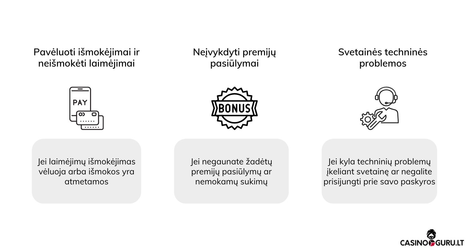 Jei laimėjimų išmokėjimas vėluoja arba išmokos yra atmetamos, klientų aptarnavimas gali išnagrinėti situaciją ir padėti ją greičiau išspręsti.