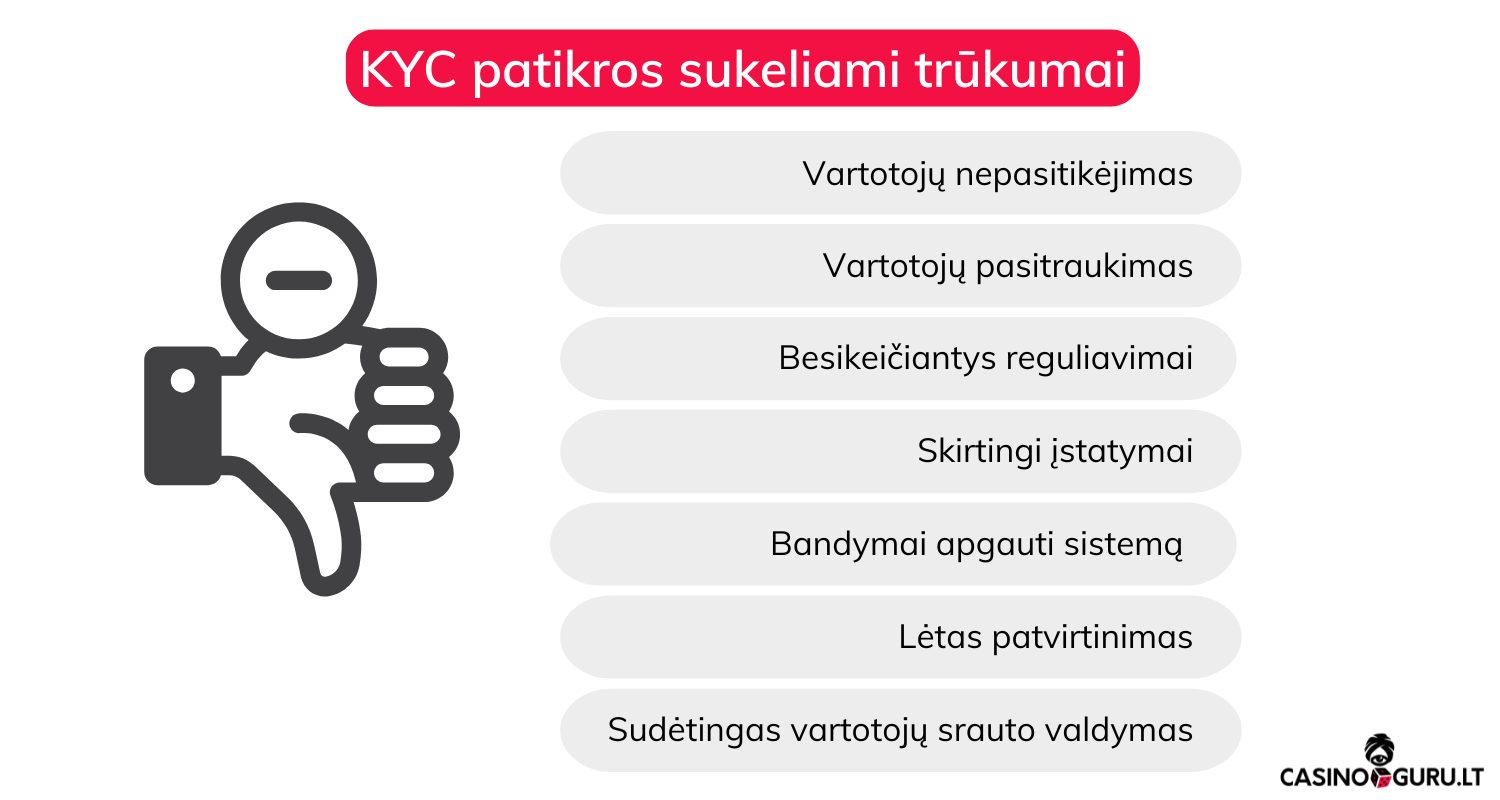 Be viso to, KYC reikalavimų įgyvendinimas neretai sukelia tam tikrų papildomų praktinių ir techninių sunkumų, pavyzdžiui: