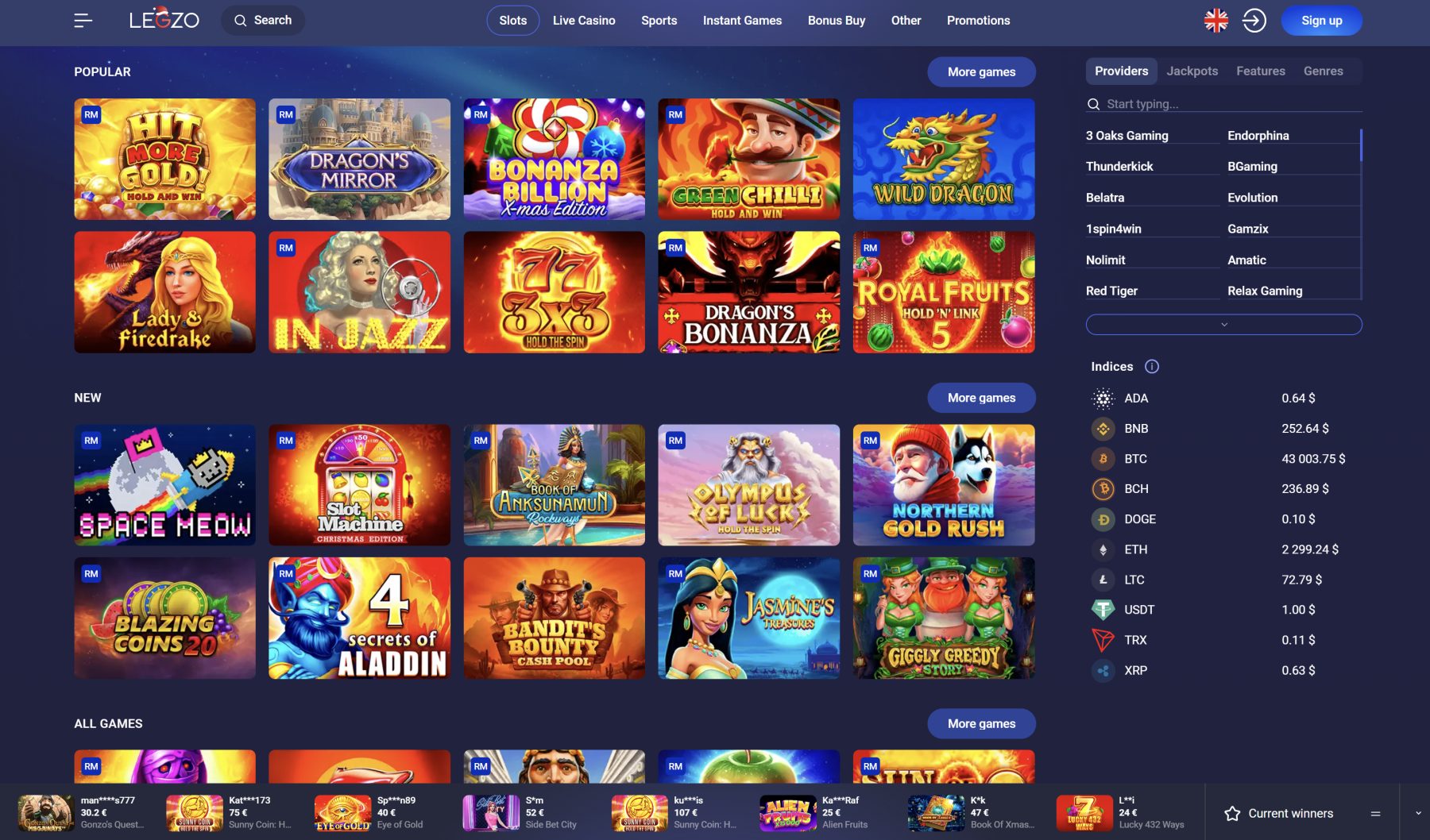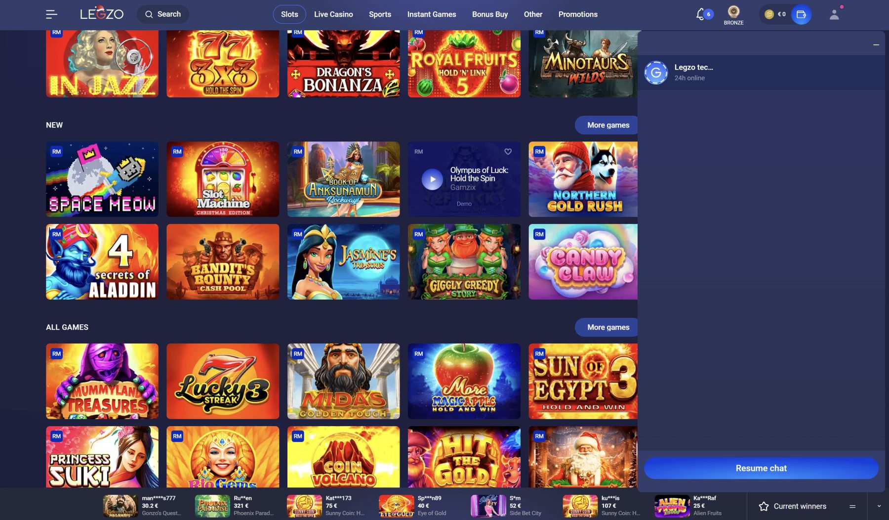 Svarbu paminėti ir tai, kad Legzo nuolat pildo savo žaidimų pasiūlą, todėl New Games skiltyje galėsite rasti naujai pasirodančius lošimo automatus.
