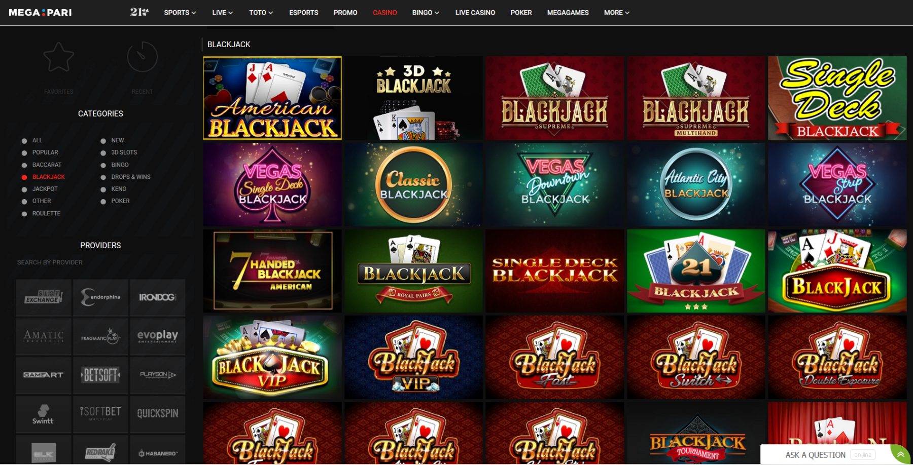 Be jau viršuje minėtų pasirinkimų, Megapari siūlo ir dar keletą kazino žaidimų rūšių: