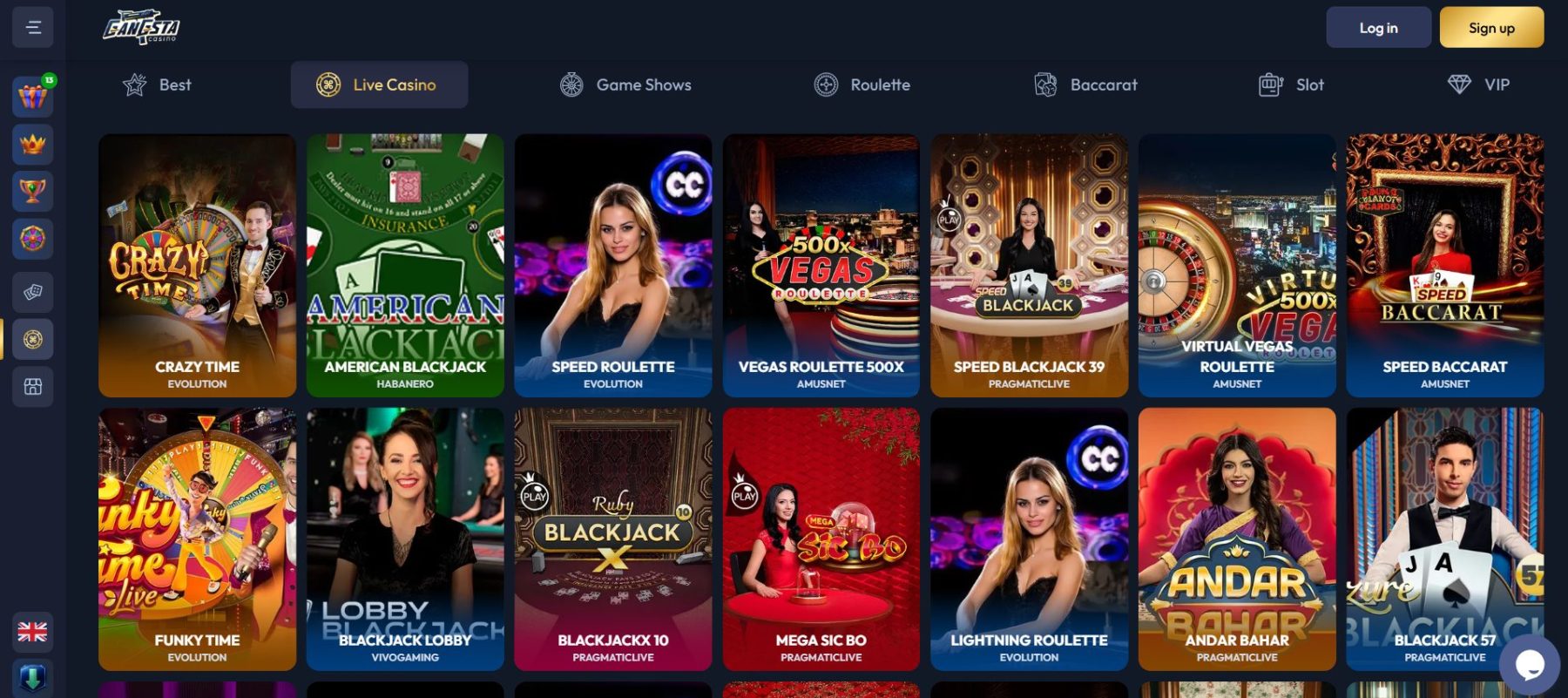 „Gangsta“ kazino bendradarbiauja tik su patikimiausiais gyvų kazino žaidimų tiekėjais. Kiekvienas jų pasižymi savo išskirtiniu stiliumi – nuo klasikinių ruletės stalų iki modernių žaidimų šou su įvairiomis kalbomis bendraujančiais vedėjais.