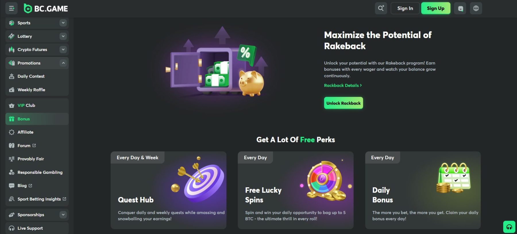 „Rakeback“ sistema dar labiau atskiria „BC.Game“ nuo tradicinių modelių. Nepriklausomai nuo statymo rezultato – atgaunate dalį nuo kiekvieno atlikto statymo.
