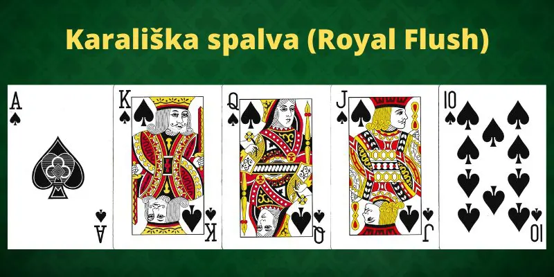 Pokerio kombinacijos išdėstytos nuo stipriausios iki silpniausios. Įsiminkite šią hierarchiją – ji lems jūsų sėkmę prie stalo.