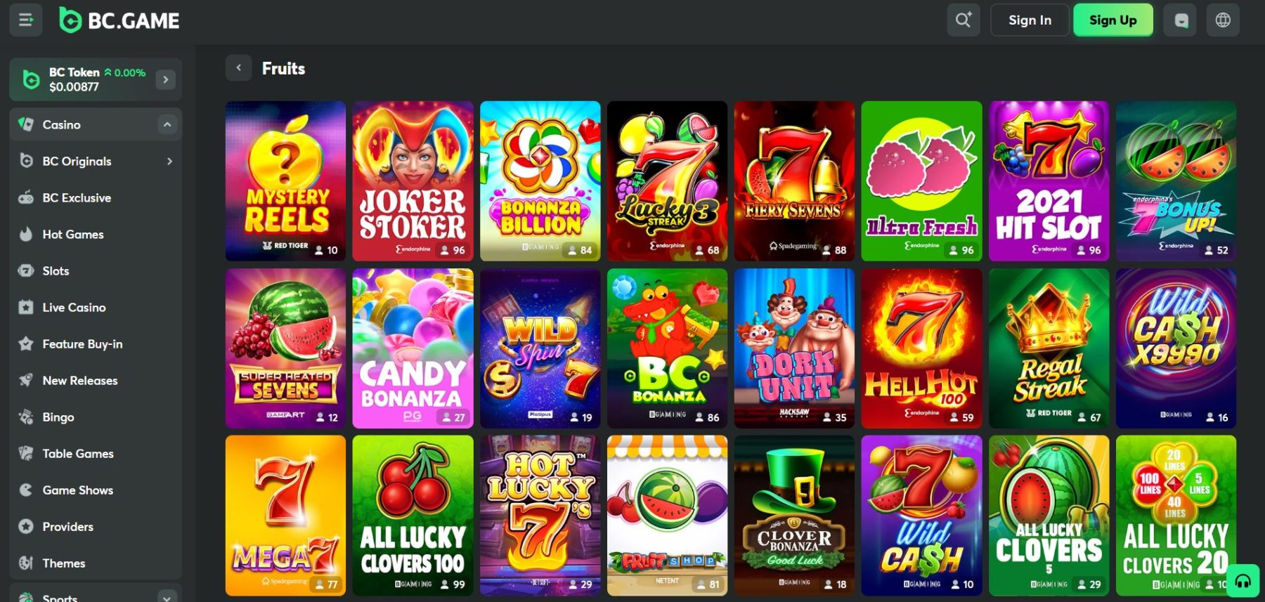Lošimo automatų patirtį labiausiai formuoja temos, o „BC.Game“ kazino gali pasigirti viena plačiausių jų įvairovių. Čia yra visko – nuo paprastų vaisių automatų, patinkančių klasikos mėgėjams, iki fantazijos pasaulių, leidžiančių pasinerti į kitokias istorijas.