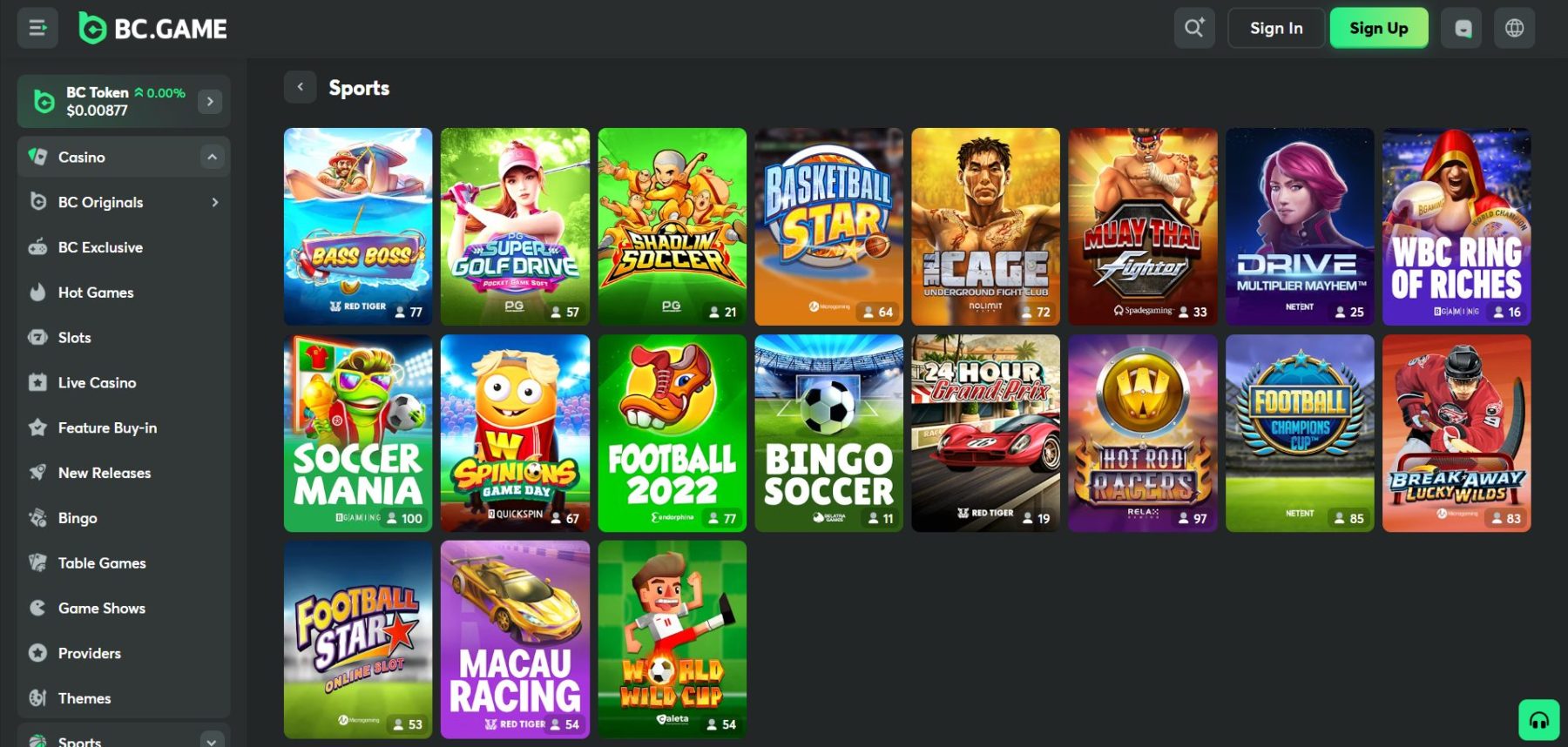„BC.Game“ sporto lošimų automatų tematikos sąraše rasite tokius pavadinimus kaip: