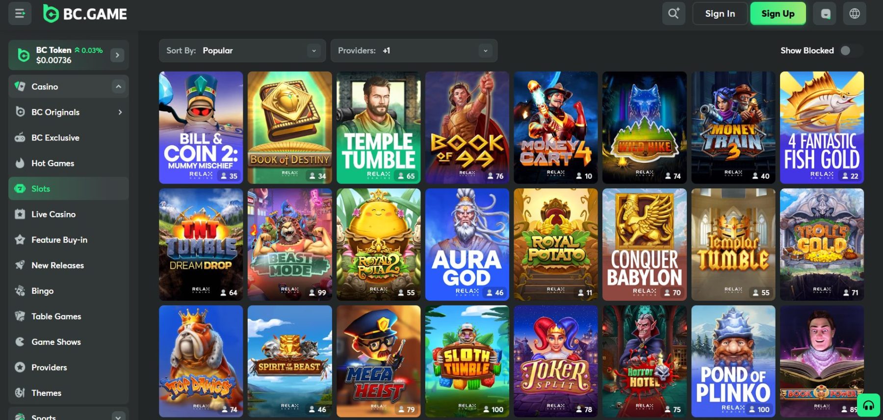 „BC.Game” – geriausias kriptovaliutų kazino su „Relax Gaming” lošimo automatais. Naršykite žaidimus pagal pavadinimą, lošimo automatų temas arba filtruokite pagal tiekėją. Jūsų patogumui, galite pridėti bet kurį žaidimą prie mėgstamiausių, kad ateityje galėtumėte lengvai jį pasiekti.