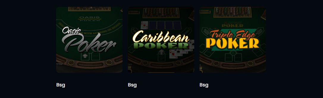 Čia rasite tokius pasirinkimus kaip „Oasis Poker“, „Caribbean Poker“ ar „Triple Edge Poker“, kurių pagrindinius aspektus taip pat rasite žemiau: