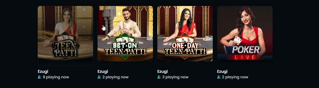 Čia rasite itin greito tempo „Dragon Tiger“, paprastą ir lengvai perprantamą „Teen Patti“, klasikinį „Video Poker“ bei patikimą „Caribbean Stud“.