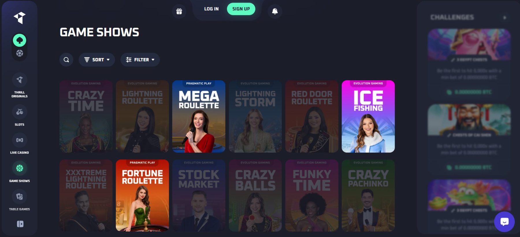 „Thrill“ žaidimų šou sujungia televizijos stiliaus formatą ir gyvą kazino aplinką. Tai vieta, kurioje nežaidžiate vieni, o leidžiate laiką su kitais lošėjais ir galite išbandyti savo įgūdžius.