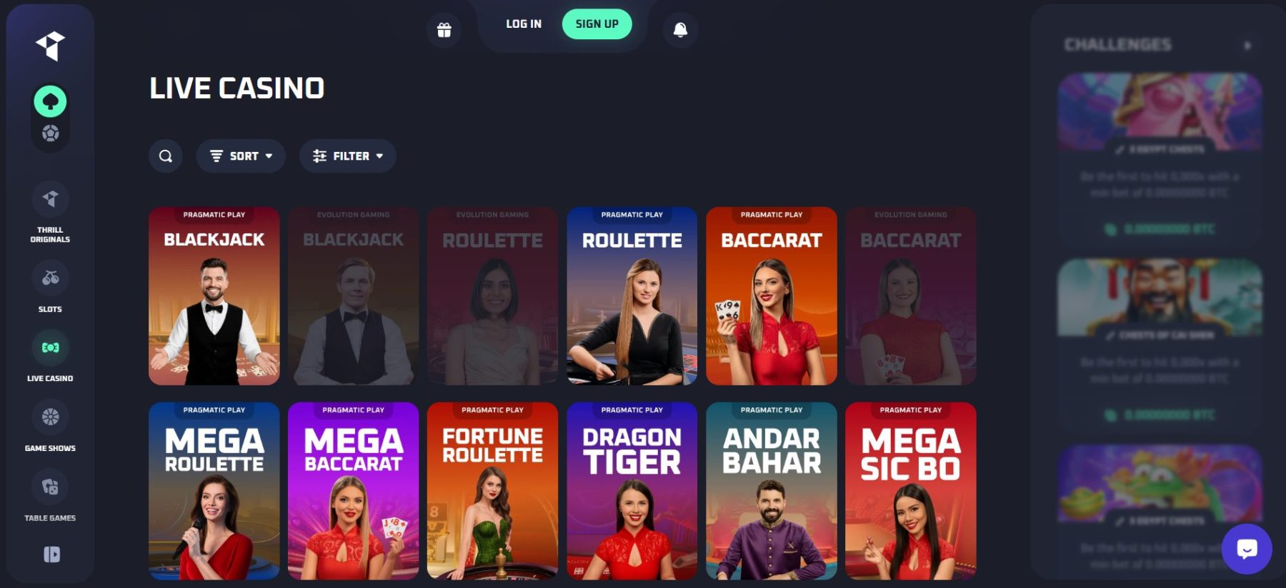 „Thrill“ internetinis kazino suteikia lošimo erdvę, kurioje rasite tiek nišinius žaidimus, tiek ir visiems gerai pažįstamus pavadinimus. Nesvarbu, ar mėgstate lošimo automatus, gyvus stalus, ar kazino žaidimų šou – pasirinkimų čia niekada nepritrūks.