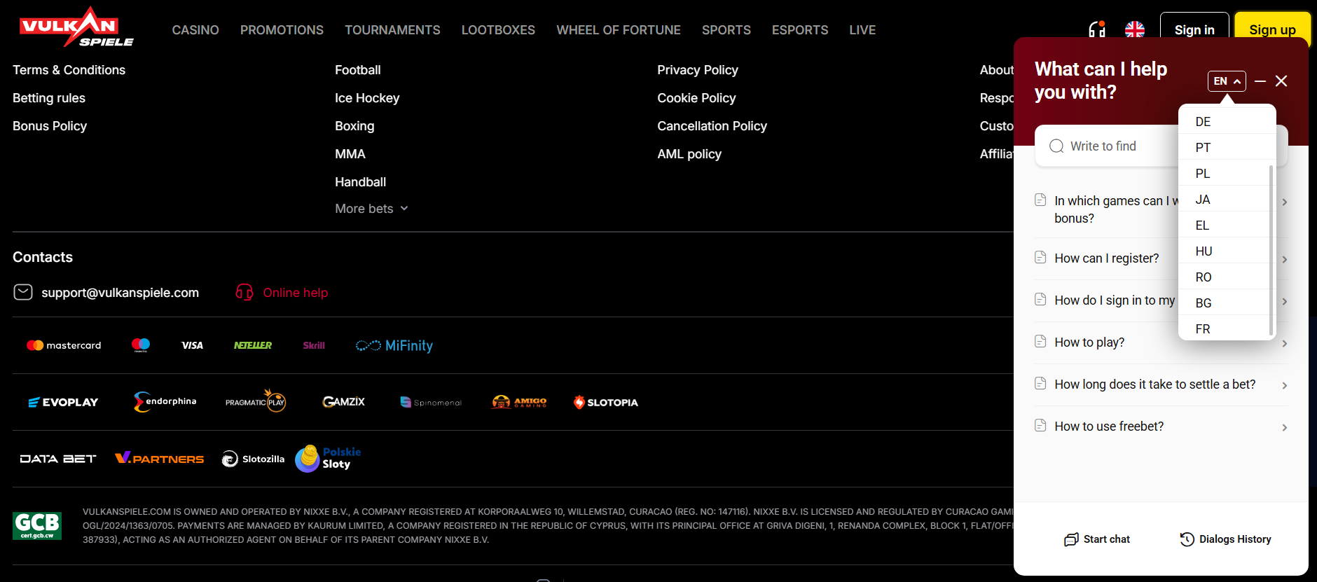 Susisiekėme su „VulkanSpiele“ klientų aptarnavimu ir likome tikrai patenkinti – pagalba greita ir naudinga. Tiesioginis pokalbis svetainėje veikia kasdien, o prie konsultanto prisijungėme per mažiau nei dvi minutes. Atsakymai buvo draugiški, o svarbiausia – problema iš karto buvo išspręsta.