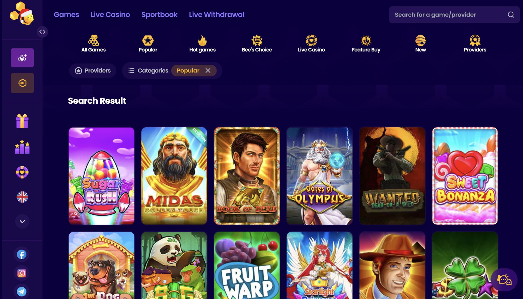 Wazbee turi vieną geriausių žaidimų portfolio visoje rinkoje. Šiame kazino rasite tūkstančius skirtingų žaidimų iš daugybės geriausių tiekėjų. Thunderkick, Hacksaw, NoLimit, Push Gaming, ELK, Spribe, Relax Gaming – visi šie tiekėjai yra prieinami kartu ir su kitais, mažiau žinomais vardais.