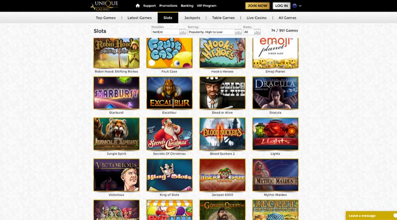 Kaip jau ne kartą minėjome – lošimo automatų pasirinkimas yra vienas iš pagrindinių kriterijų, vertinant internetinius kazino. Užsukę į WinUniqueCasino “Slots” skiltį išvysite beveik 1000 skirtingų žaidimų. Šis skaičius yra tikrai neblogas.