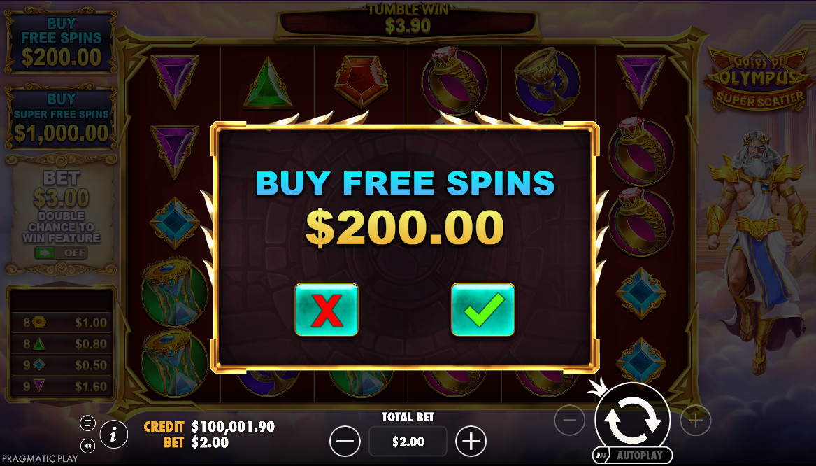 Jei nesate tikri, ar „Gates of Olympus Super Scatter“ jums tinka, galite jį išbandyti nemokamai. Šiame puslapyje siūlome žaidimą demonstraciniu režimu, todėl užtenka jį paleisti ir pradėti žaisti.